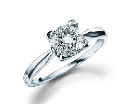 - Une bague sertie de 12 diamants authentiques, avec monture en argent sterling rhodié